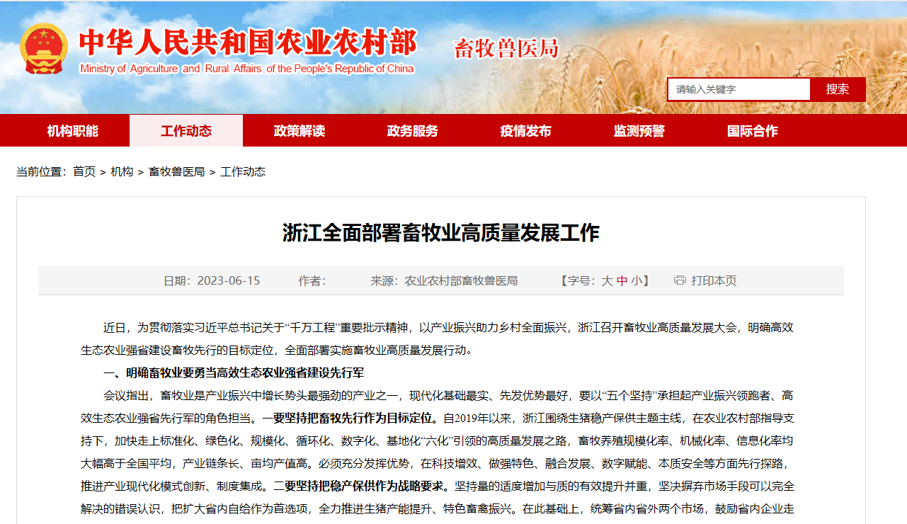 浙江全面部署畜牧業(yè)高質量發(fā)展工作