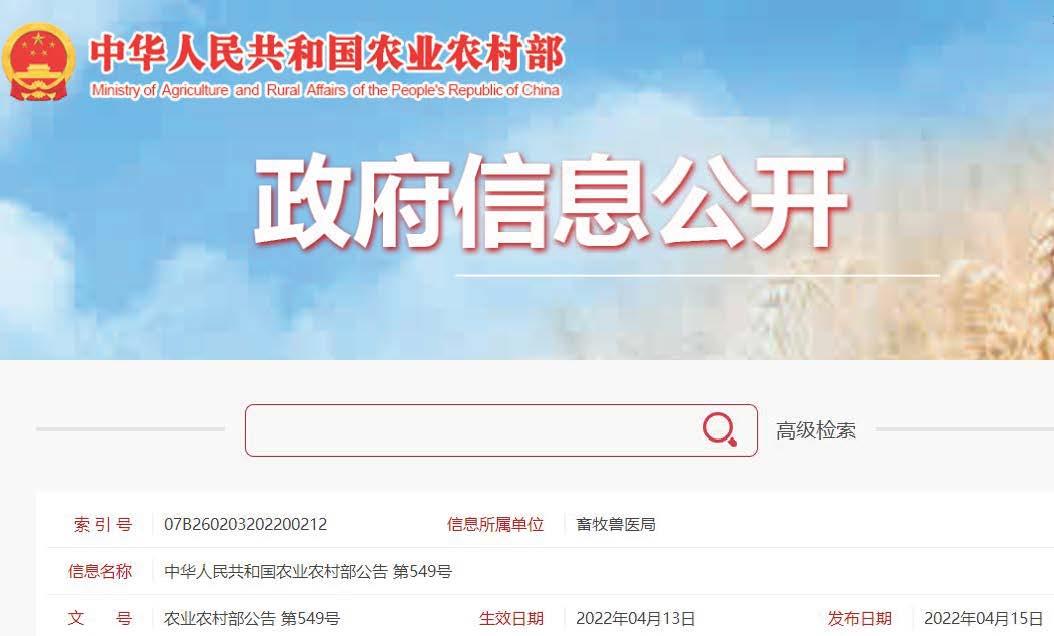 農(nóng)業(yè)農(nóng)村部對獸藥產(chǎn)品批準文號審批工作進一步實施優(yōu)化服務(第549號公告)