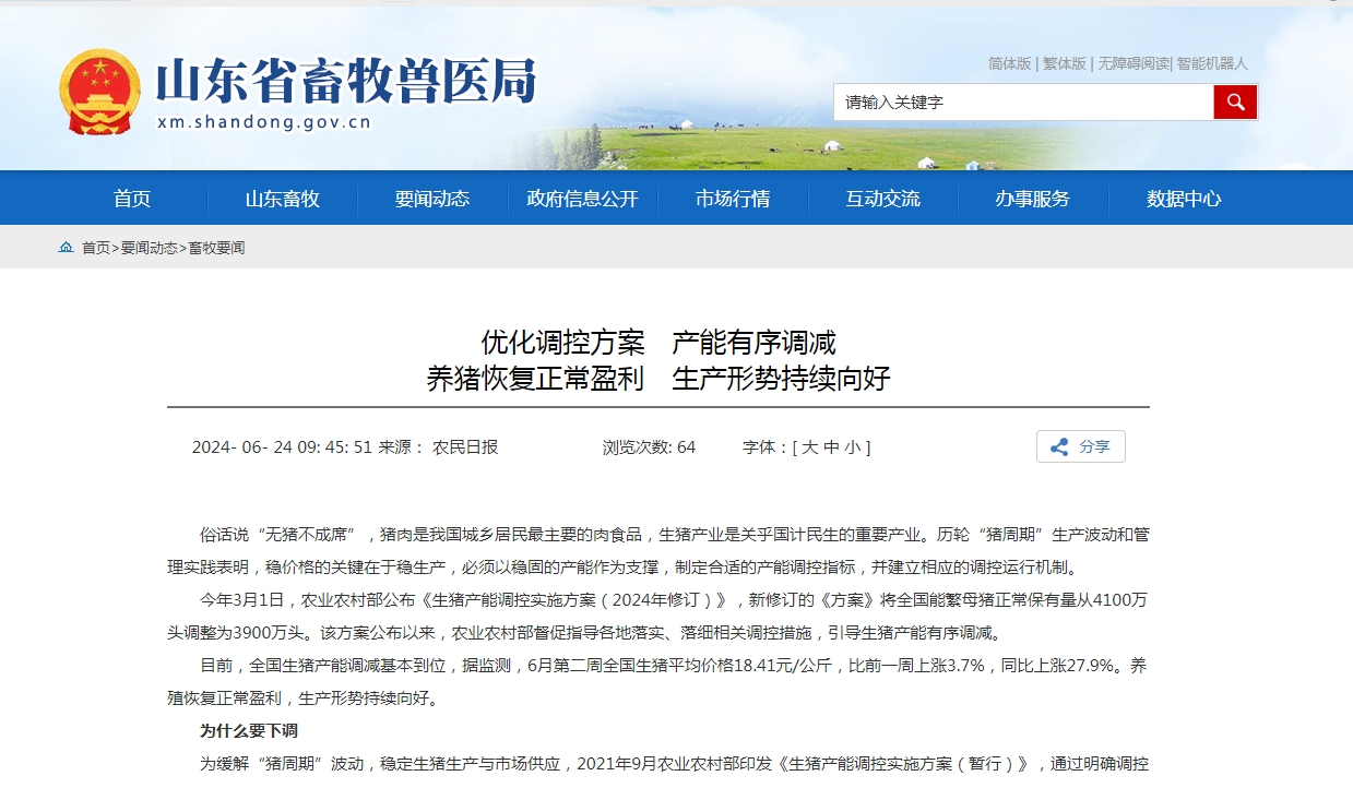 優(yōu)化調(diào)控方案 產(chǎn)能有序調(diào)減 養(yǎng)豬恢復(fù)正常盈利 生產(chǎn)形勢(shì)持續(xù)向好