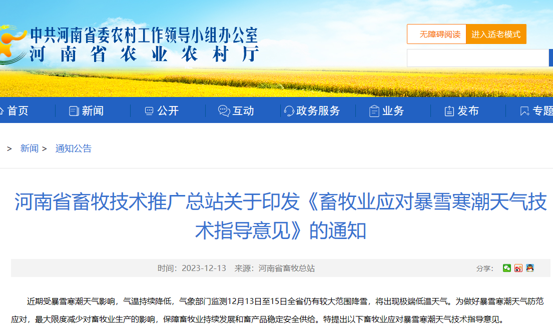 河南省畜牧技術(shù)推廣總站關(guān)于印發(fā)《畜牧業(yè)應(yīng)對暴雪寒潮天氣技術(shù)指導(dǎo)意見》的通知