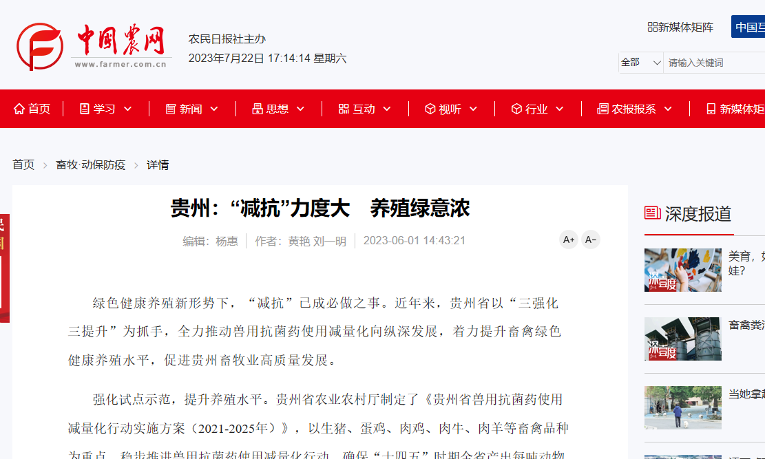 貴州:“減抗”力度大 養(yǎng)殖綠意濃綠色健康養(yǎng)殖新形勢下,“減抗”已成必做之事。近年來,貴州省以“三強化三提升”為抓手,全力推動獸用抗菌藥使用減量化向縱深發(fā)展,著力提升畜禽綠色健康養(yǎng)殖水平,促進貴州畜牧業(yè)高質(zhì)量發(fā)展。強化試點示范,提升養(yǎng)殖水平。貴州省農(nóng)業(yè)農(nóng)村廳制定了《貴州省獸用抗菌藥使用減量化行動實施方案(2021-2025年)》,以生豬、蛋雞、肉雞、肉牛、肉羊等畜禽品種為重點,穩(wěn)步推進獸用抗菌藥使用減量化行